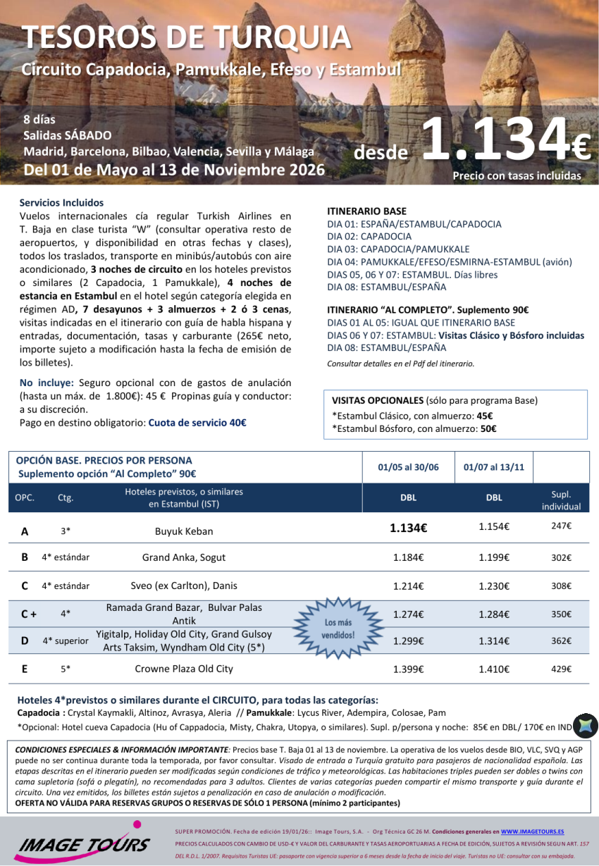 Tesoros de TURQUIA Verano 2026: Capadocia, Pamukkale, Efeso y Estambul, todo avión, 8ds desde 1.134€