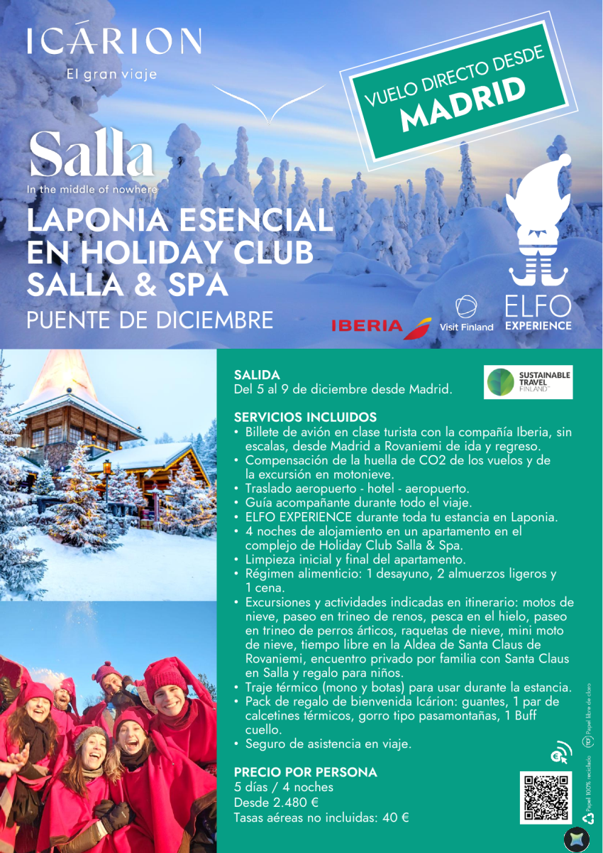 Laponia esencial en Holiday Club Salla & Spa. Puente de diciembre. Vuelo directo desde Madrid